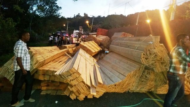 Según los detalles facilitados por el comunicador Amelio Domínguez, la patana de la marca Kenworth de color blanco, ficha P-324 perteneciente al Sindicato de Camioneros y Furgoneros de Puerto Plata, que era conducida por el chofer José Francisco Cabrera, quedó con todos sus neumáticos hacia arriba, ya que su tráiler placa F-007568, también se volcó y esparció su carga de madera en medio de la vía.